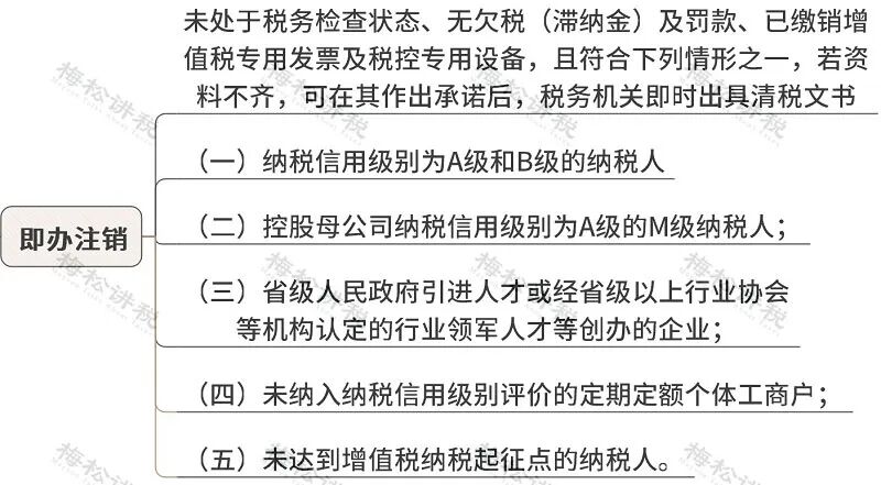 结合税总发〔2018〕149号及税总发〔2019〕64号的规定,目前税务机关已经对清税流程进行了优化,采用了即办注销。在办理税务注销时,若资料不齐,可在作出承诺后,当场出具清税文书。