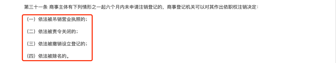 属于以上4种情形,在6个月内没有申请注销登记的,可作出依职权注销,依职权注销其实就是 “先注销,后清算”,可以大大提高效率,清除“僵尸主体”。同时为了规避风险,注销后若有未完结的债权债务关系,可恢复到注销前的状态。