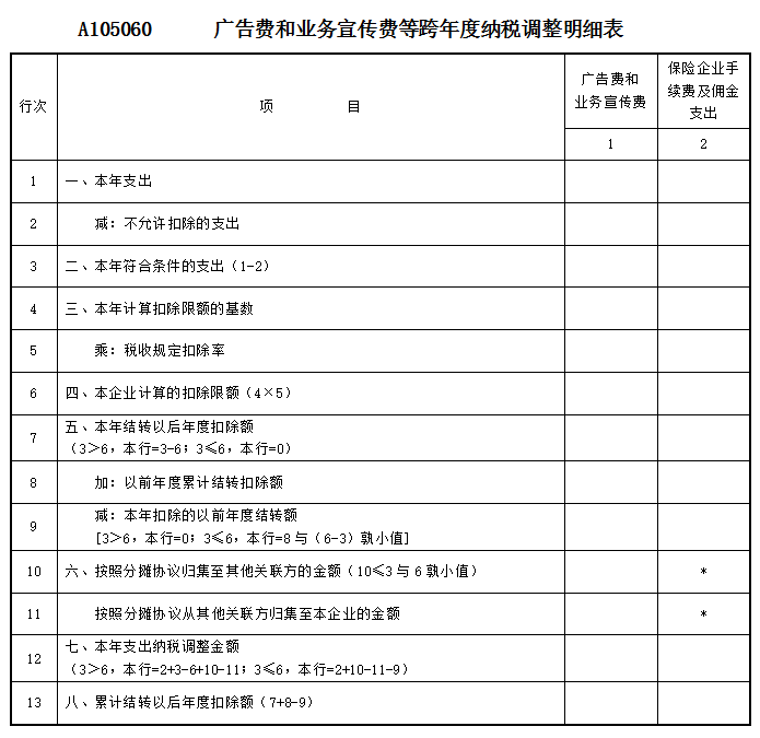 《国家税务总局关于修订企业所得税年度纳税申报表有关问题的公告》(国家税务总局公告2019年第41号)对《广告费和业务宣传费跨年度纳税调整明细表》(A105060)的表单样式及填报说明进行修订。