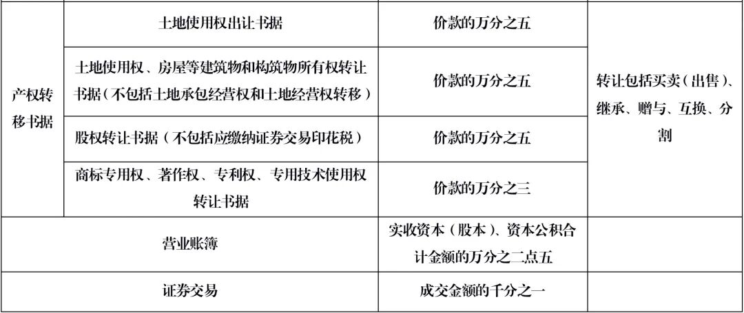 在产权转移书据中,除了各种权利转让税率为万分之三外,其余书据均为万分之五。